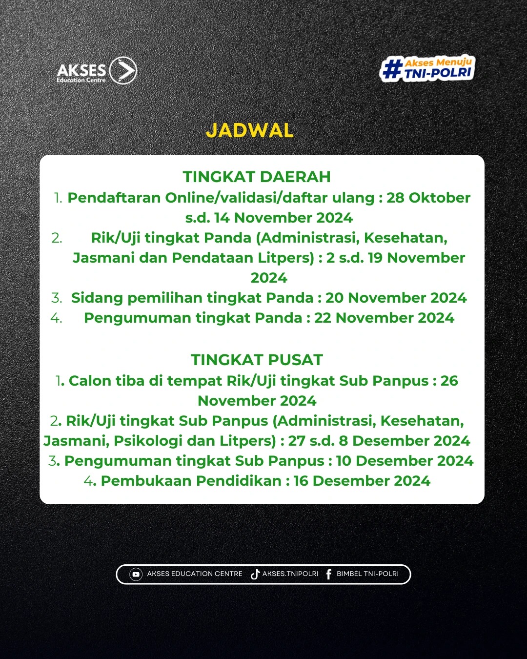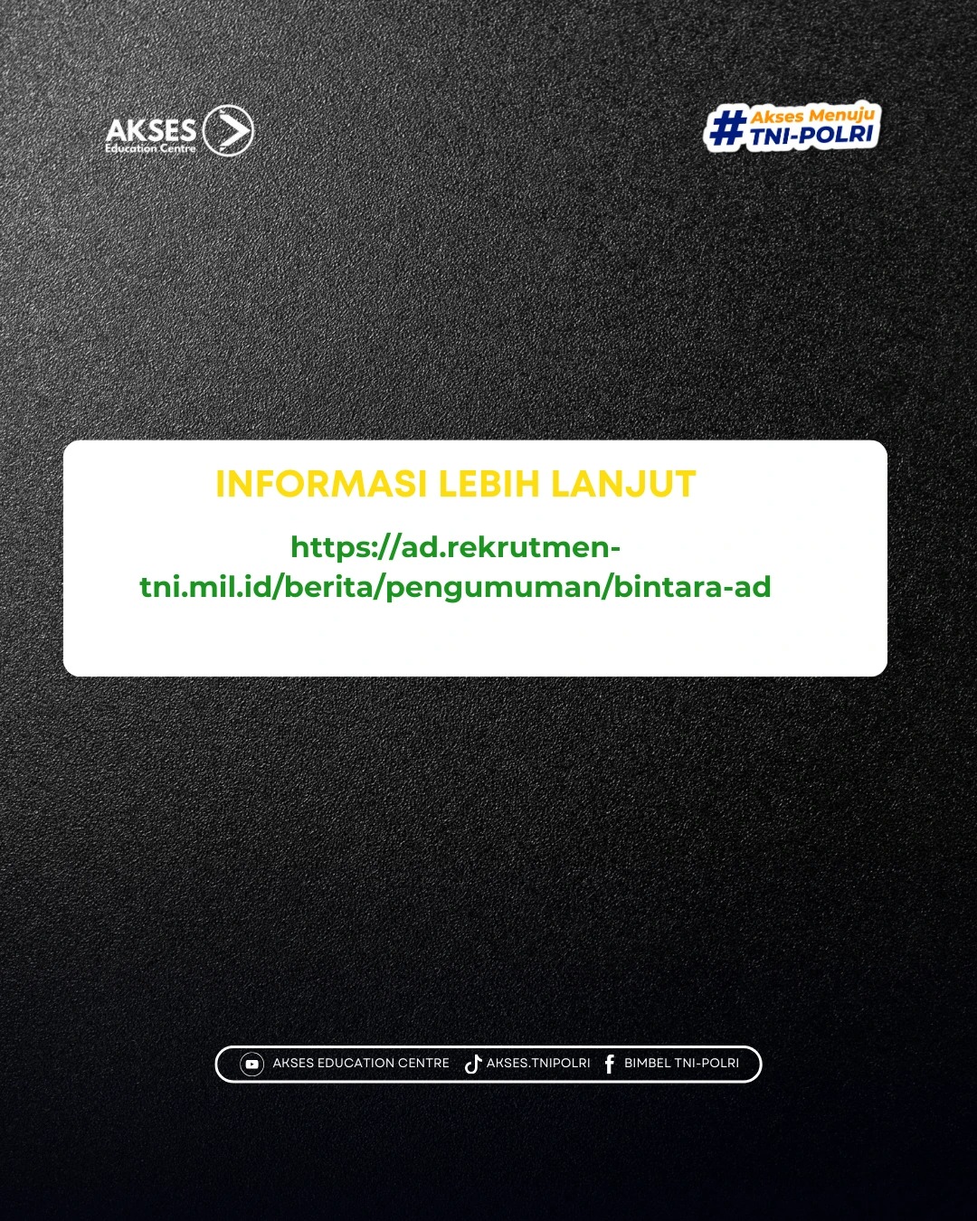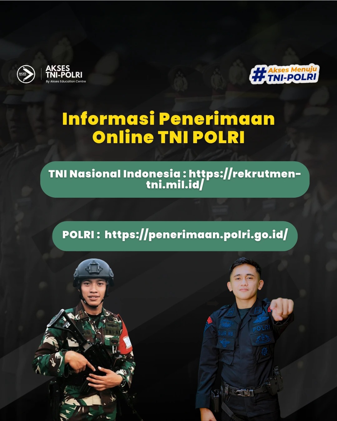 Bagi kamu ingin menjadi seorang anggota TNI/POLRI, dan bagi kamu yang ingin mempersiapkan tes AKMIL/AKPOL bisa bergabung bersama Bimbel Akses.